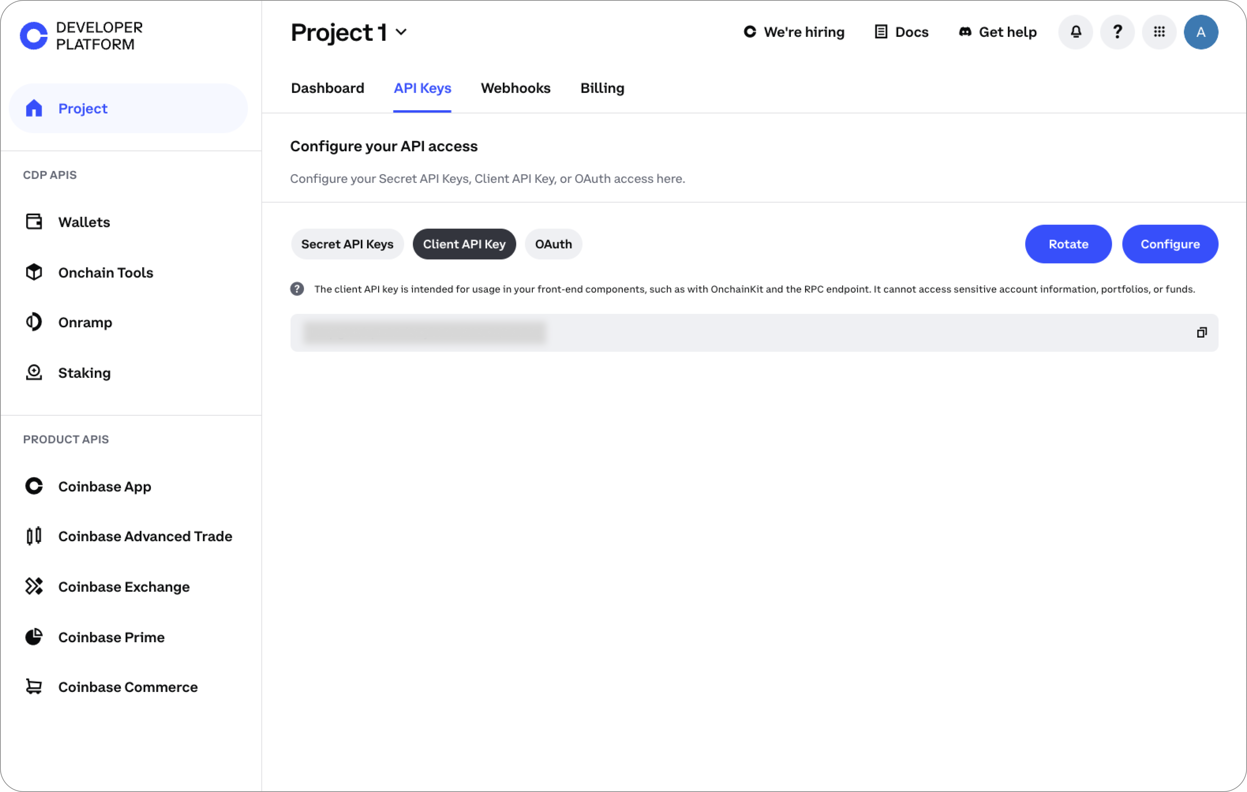 - Client API Keys: For client-side communication (i.e., JSON-RPC).