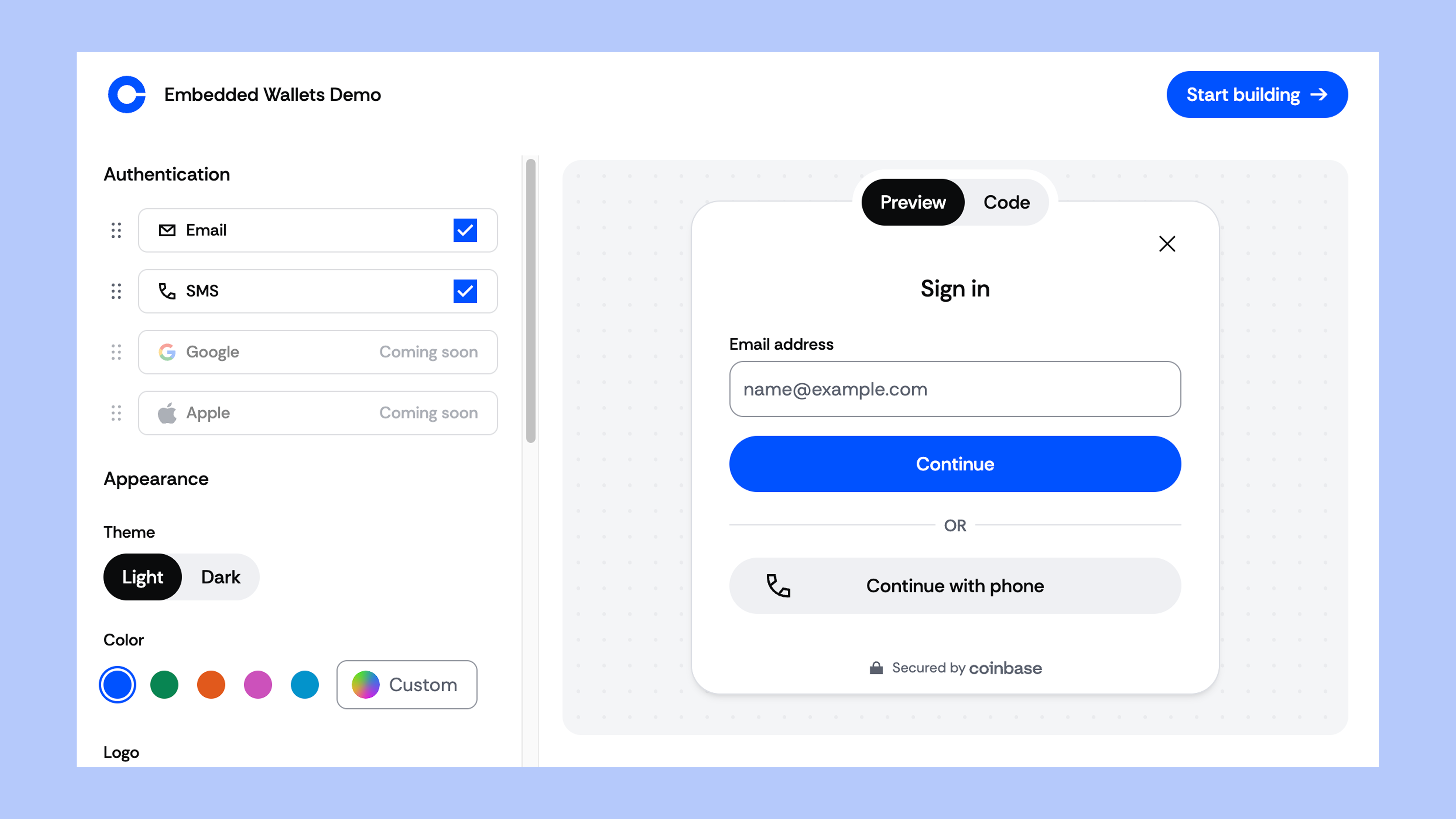 - Embedded Wallets demo builder: The demo builder is live at demo.cdp.coinbase.com.