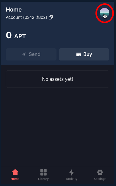 This section explains how to connect Ledger Live to Petra. It assumes that you have created and funded a Petra Aptos Wallet.- Open your Petra Wallet and click the avatar at the top right.