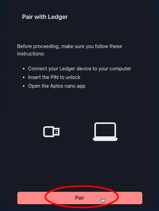 - Connect your Ledger to your computer and unlock it with your PIN.