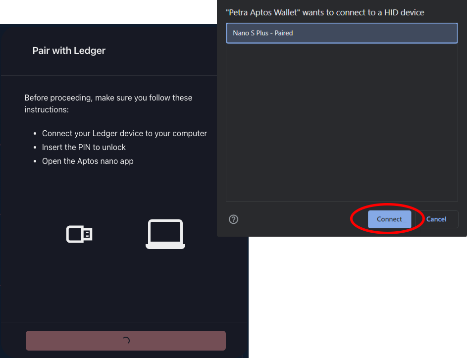 - Select your Ledger device and click Connect.