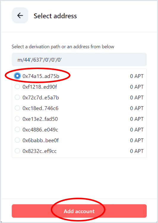 - Select an account address then click Add account.