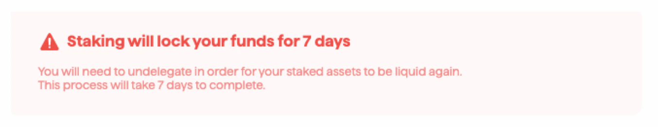 - Enter the amount of AXL tokens you would like to delegate and click Delegate. Note the unbonding period before your AXL becomes liquid again.
