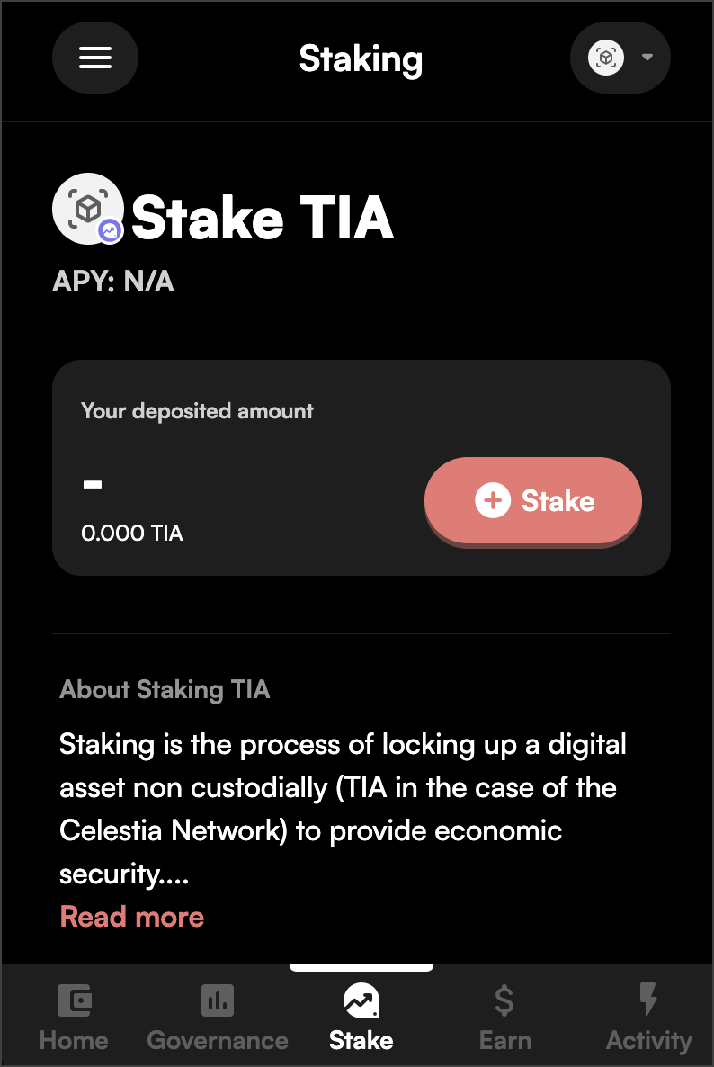- Click on Stake tab on the bottom of the extension.