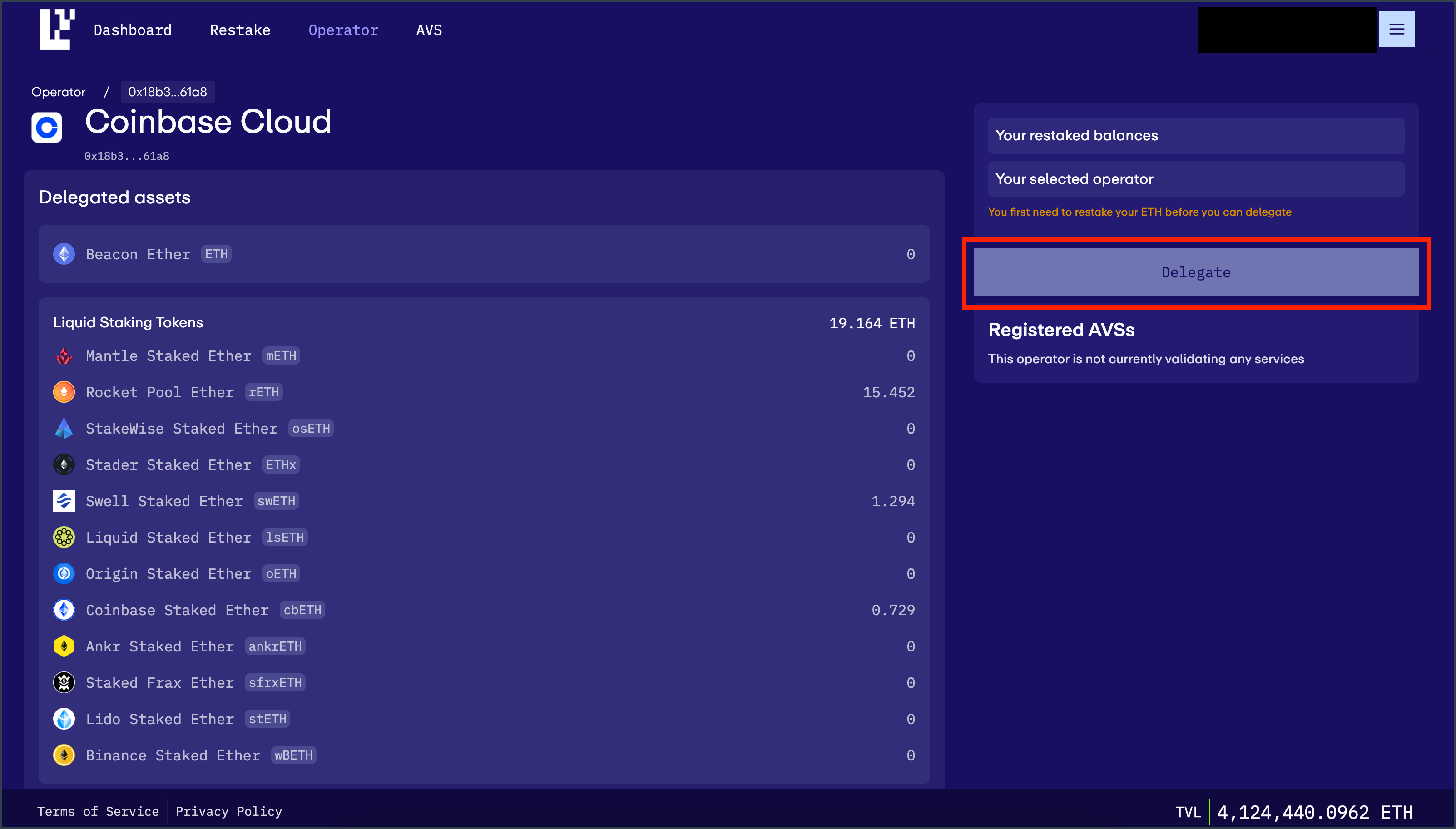 - Navigate to the EigenLayer Operator Tab