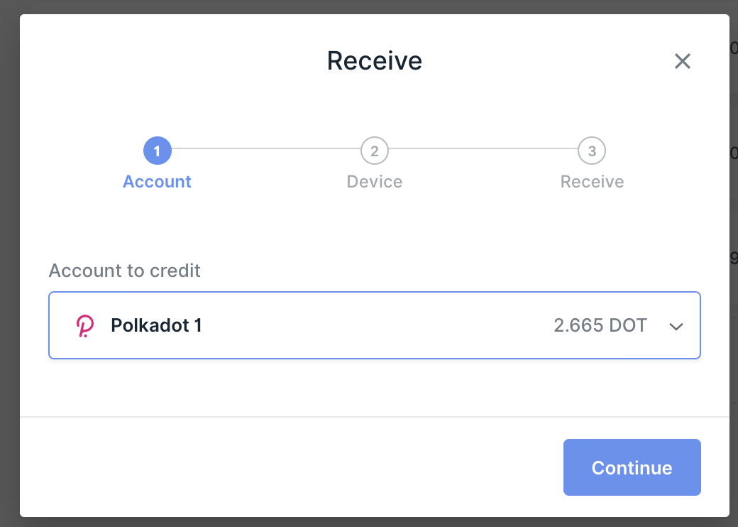 This section assumes that the Polkadot App is installed.- In Ledger Live, select Receive.