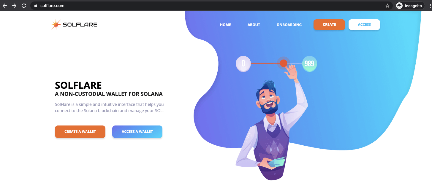 - Navigate to solflare.com and select Create a Wallet.
