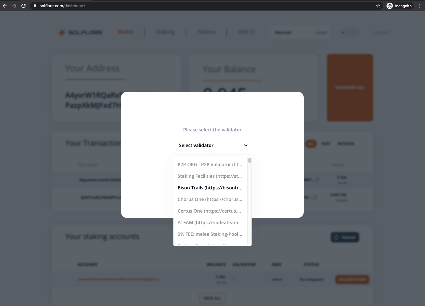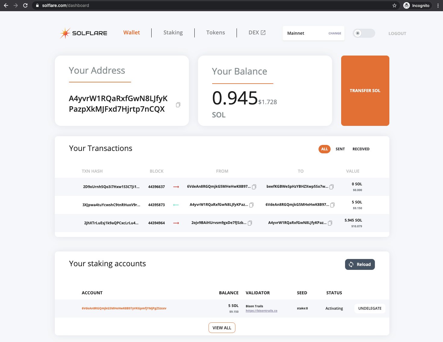 - Confirm the creation of a new stake account for the correct amount of SOL.